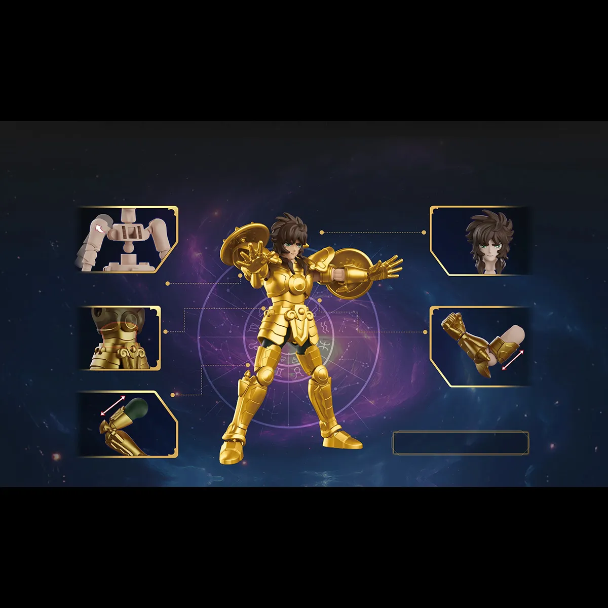 A articulação destes bonecos é um dos aspectos mais valorizados, já que cada figura possui múltiplos pontos de articulação. Isso não só possibilita posições fiéis aos momentos do anime, mas também promove uma experiência de brincadeira mais interativa. As partes das armaduras, meticulosamente detalhadas, são produzidas com uma combinação de plástico e metal, assegurando que os acabamentos tenham um visual autêntico e diferenciado. Tal atenção aos detalhes é um dos principais diferenciais da linha Legacy Gold em comparação a outras coleções disponíveis no mercado, como as tradicionais séries de bonecos de ação.